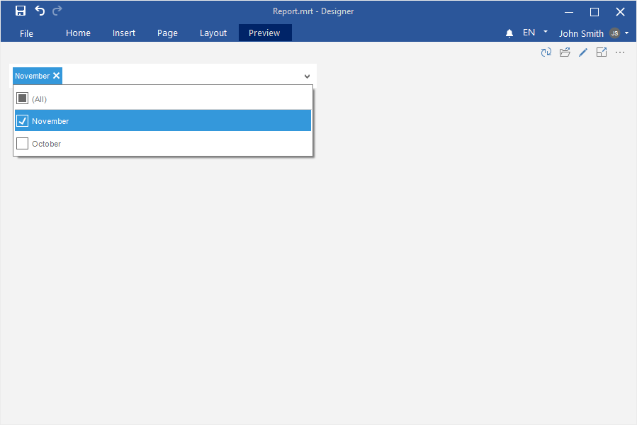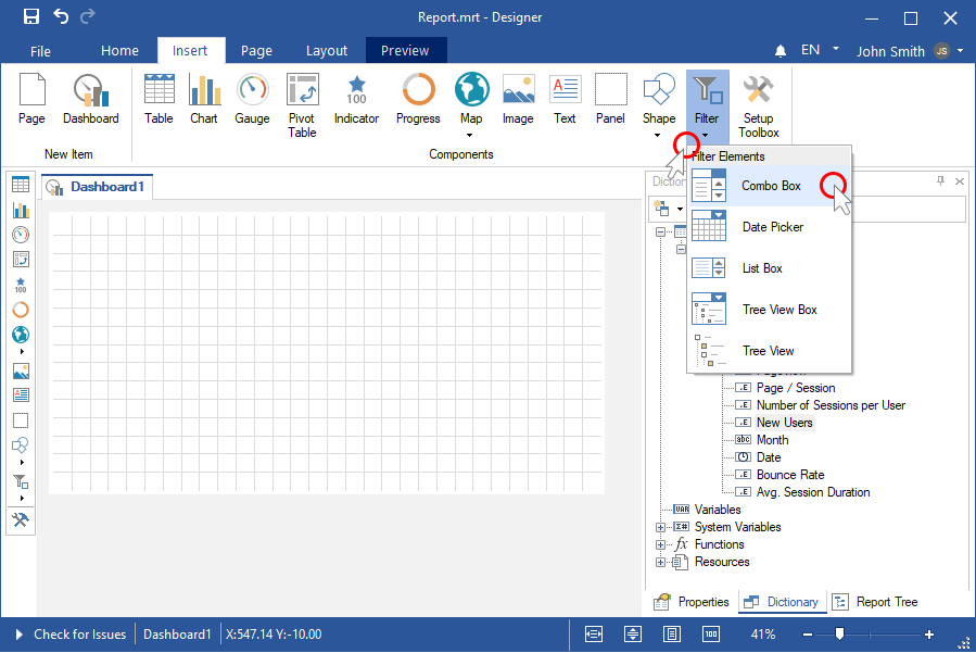 Шаг 4: Выполнить щелчок по категории Фильтры (Filters) на инструментарии дизайнера отчетов или на вкладке Вставить (Insert);