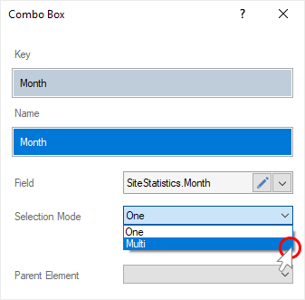 Шаг 10: Установить значение Один элемент (One) для параметра Способ выбора (Selection Mode), если необходимо разрешить выбирать только одно значение текущего элемента. Установить значение Много элементов (Multi) для параметра Способ выбора, если необходимо разрешить выбирать несколько значений текущего элемента.