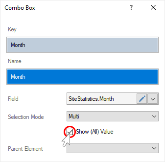 Шаг 11: Установить флажок у параметра Показывать (Все) элементы (Show (All) Value), если необходимо чтобы в списке значений присутствовало значение Все (All);