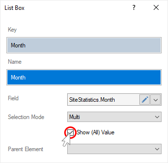 Шаг 11: Установить флажок у параметра Показывать (Все) элементы (Show (All) Value), если необходимо чтобы в списке значений присутствовало значение Все (All);