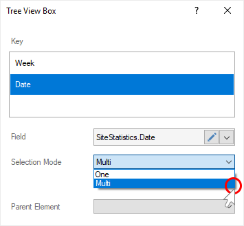 Шаг 11: Выбрать другой элемент фильтрации как значение параметра Главный элемент (Parent Element), если необходимо чтобы список значений текущего элемента зависел от выбранного значения главного элемента.